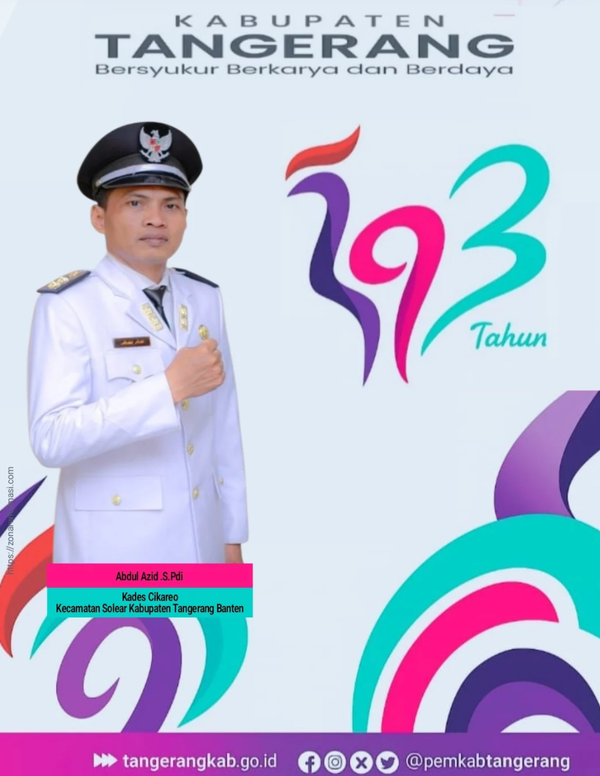 Tangerang – Abdul Azid, S.Pdi Kades Cikareo Kecamatan Solear beserta keluarga dan segenap jajaran kepemerintahan desa cikareo Mengucapkan Selamat HUT ke-393 Kabupaten Tangerang